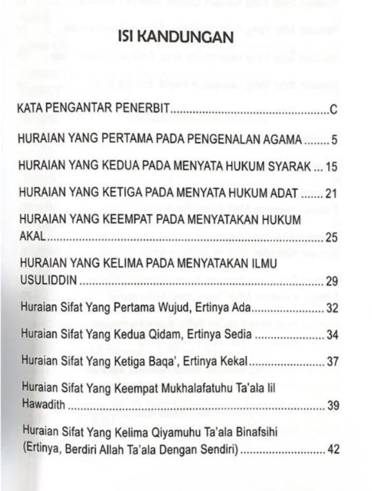 Di antara isi kandungan yang dibahaskan di dalam kitab ini adalah: